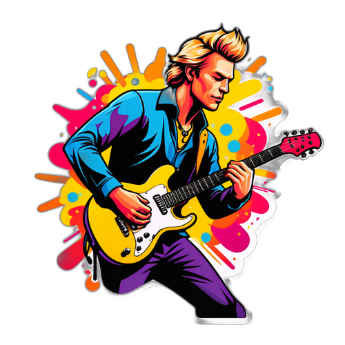 Randy Rhoads hyllningsklistermärke med elgitarr och ikoniska musiknoter