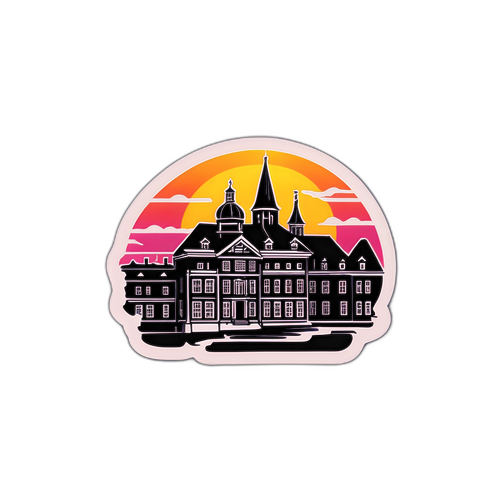 Härnösands historiska byggnader med solnedgång
